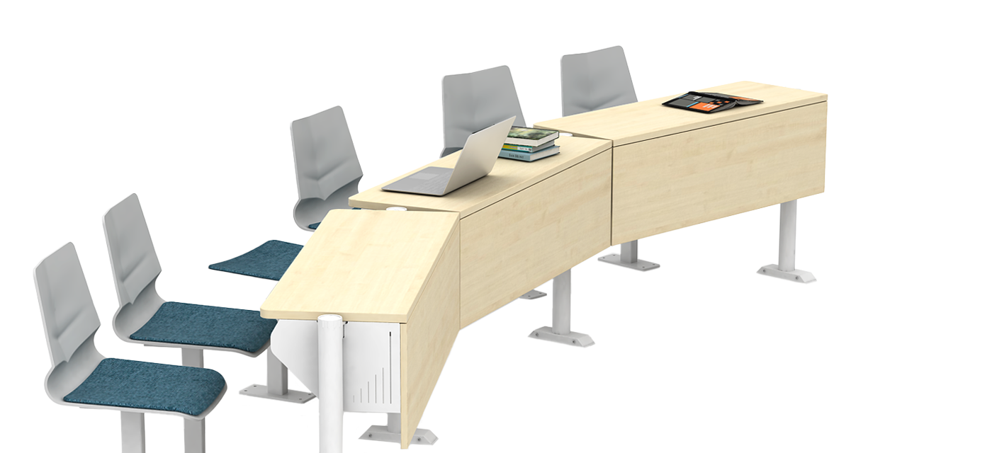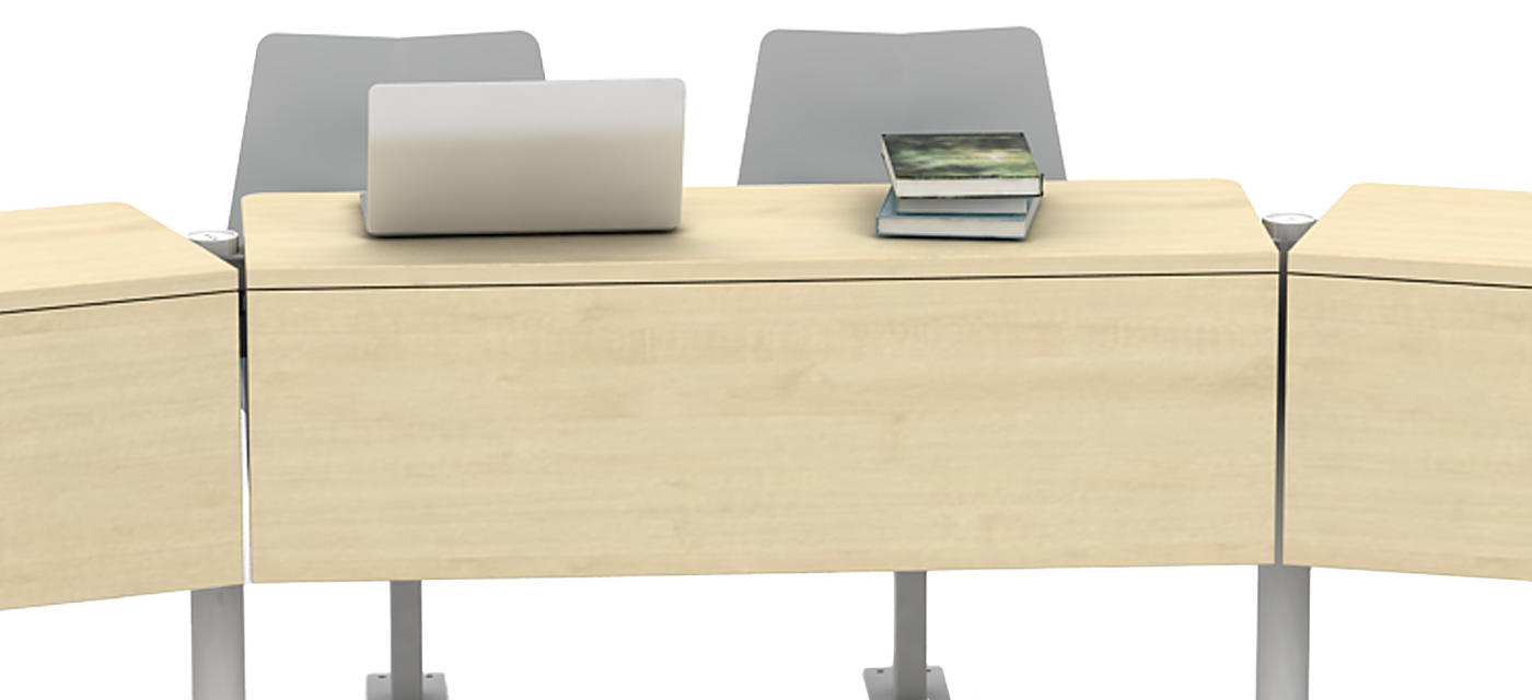 The adjustable Kurv tabletop rotates to achieve perfect alignment with curved classroom layouts. Whether the seating is concave or convex, each student enjoys an ergonomic working angle, improved visibility, and enhanced interaction with faculty and peers.