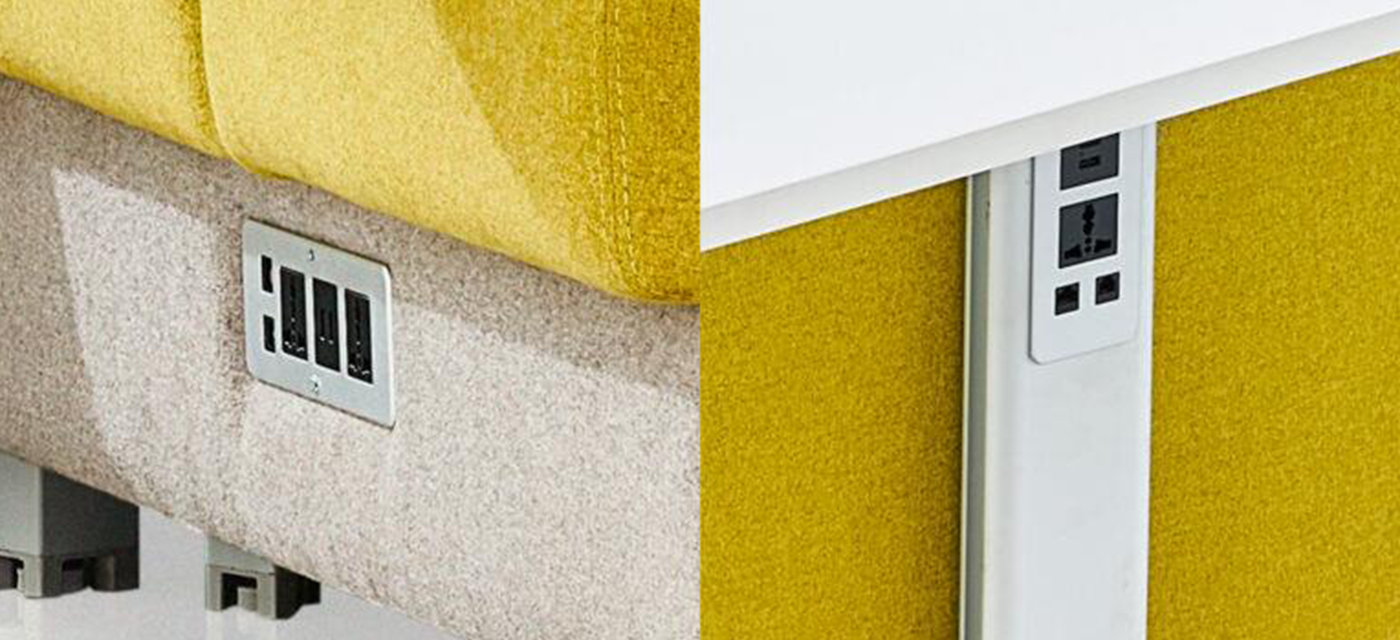 The ergonomic design ensures that the entire set-up is equipped with universal electrical outlets and USB ports for charging devices and LAN ports for connectivity.