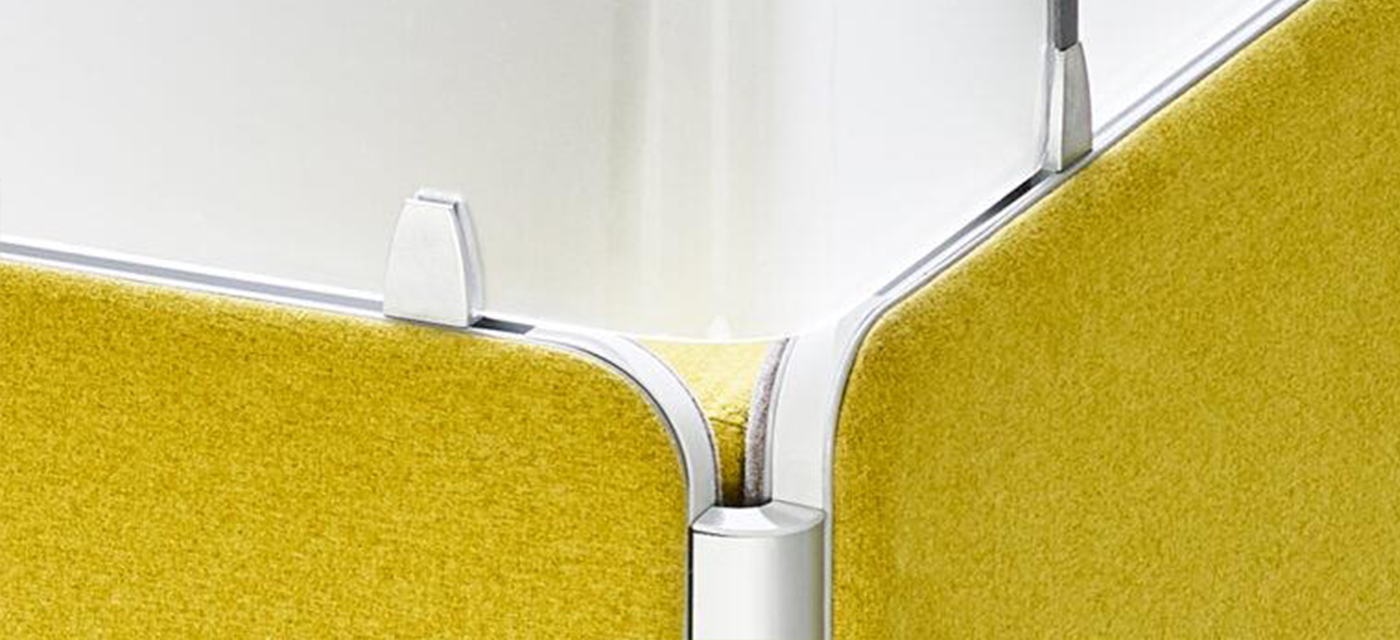 Our Aluminum based panels are 55-60 MM thick and upholstered with an acoustic fleece, which is ideal for absorbing sound. Our panel edges are powder coated with 60 microns of thickness to ensure scratch resistance.
