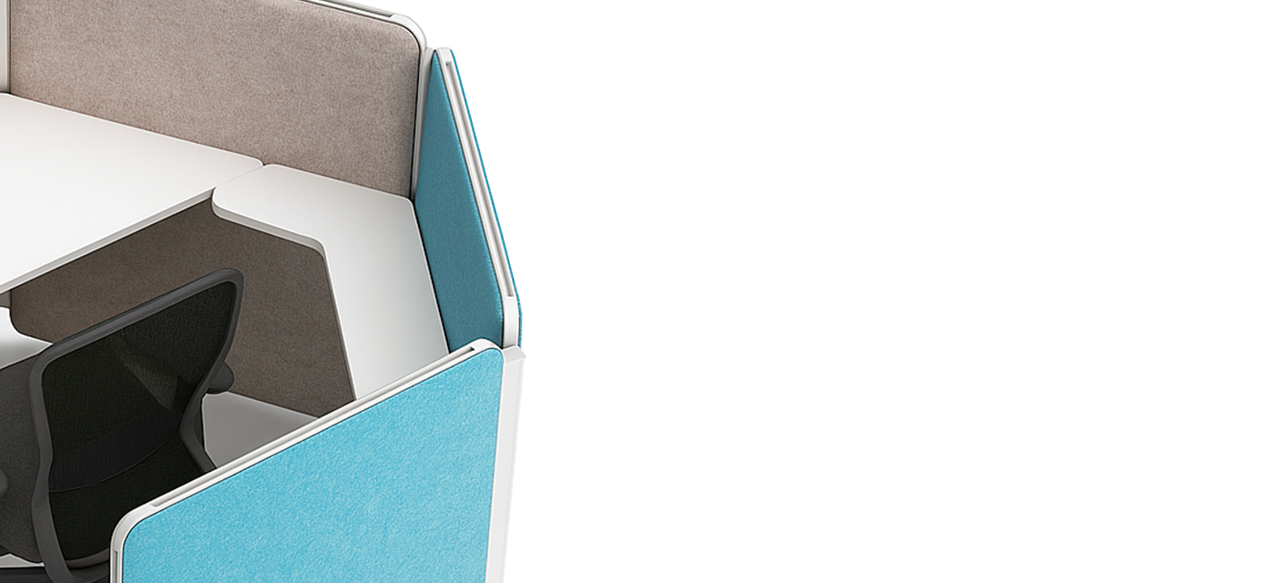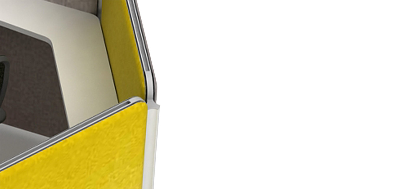Our Aluminum based panels are 55-60 MM thick and upholstered with an acoustic fleece, which is ideal for absorbing sound. Our panel edges are powder coated with 60 microns of thickness to ensure scratch resistance.