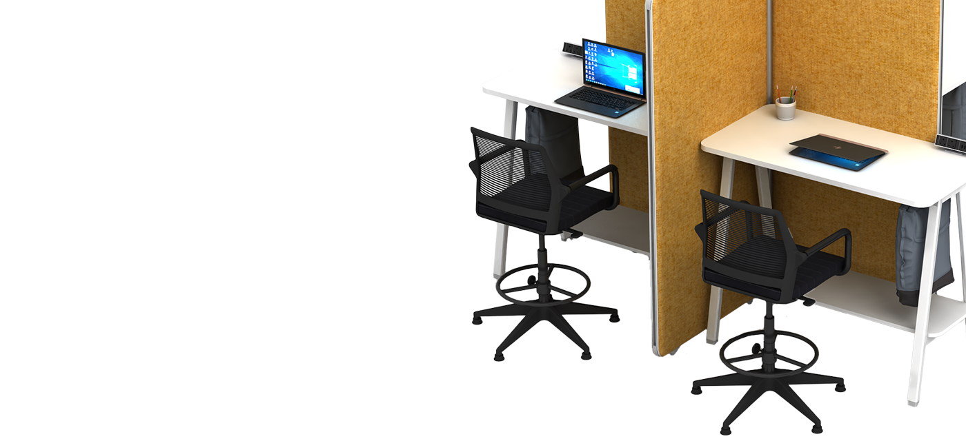 With seamless integration of desks and privacy panels, the Study promotes productivity while maintaining a minimal footprint.