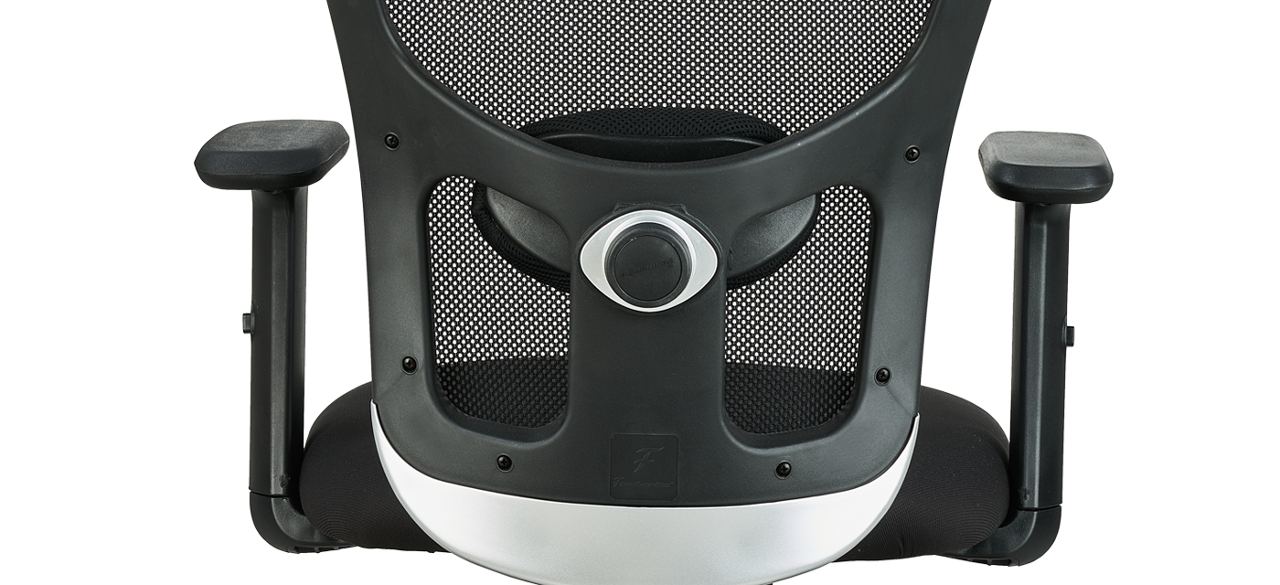 Its flared backrest promotes dynamic seating and provides superior shoulder support and its cushioned lumbar support with an adjustable knob allows you to fine-tune the comfort level.