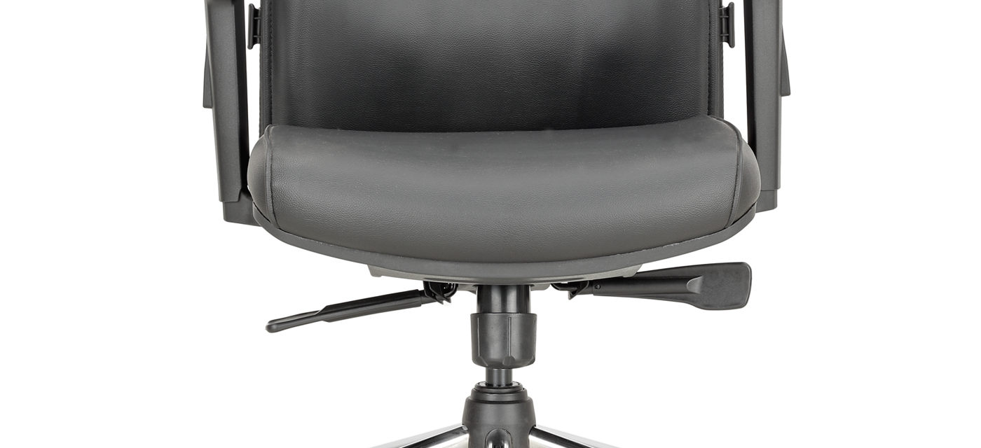 The chair is upholstered in premium leatherette and leather, combining comfort with durability and making it perfect for long hours of use in modern workspaces.