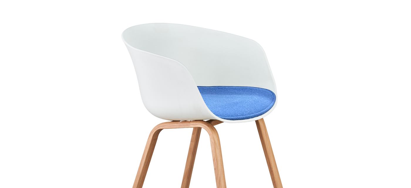 Its sculpted PP shell offers a relaxed, supportive sit, while powder-coated wooden legs bring warmth and organic charm to the overall form.