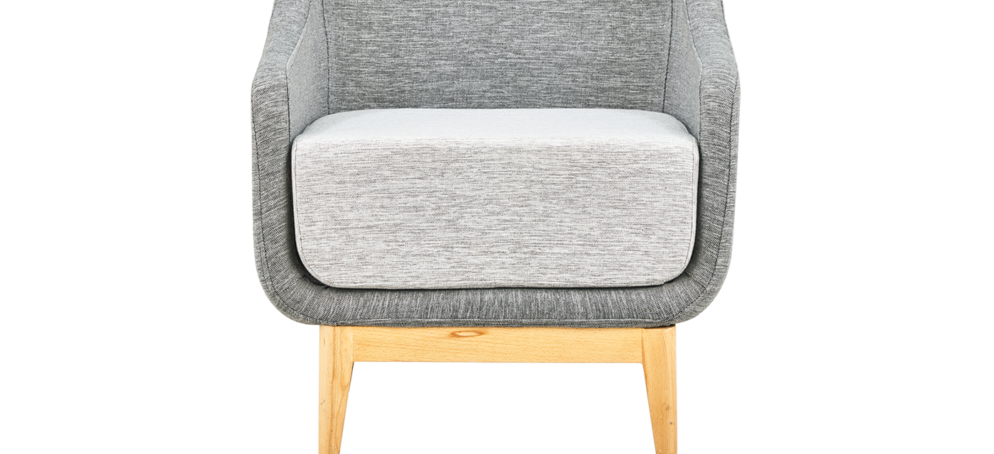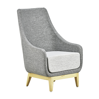 The plush seat cushion delivers soft, balanced support, while the clean lines and warm wooden base make it a refined fit for modern lounges or tranquil reception zones.