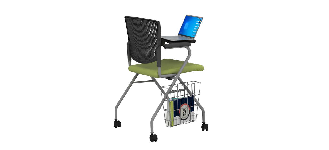 The under-seat book mesh adds functionality to the Chair, ideal for classrooms and training environments.