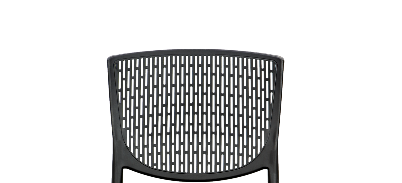 The perforated backrest conforms to the user's posture while allowing airflow. The ergonomic curve supports the spine naturally, reducing fatigue during long sessions.