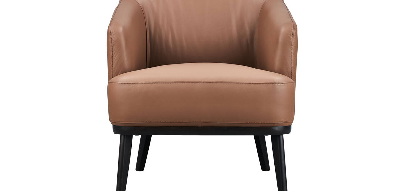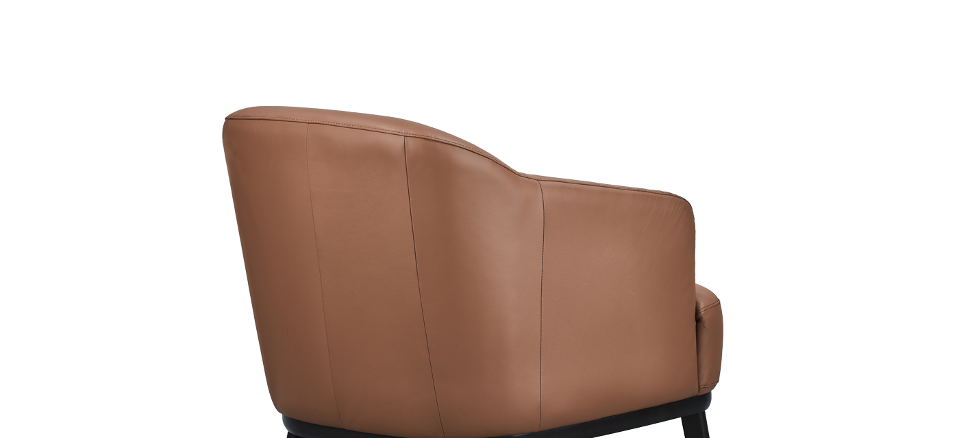 The gently curved backrest is fully upholstered in premium leather for a seamless, supportive feel—offering relaxed posture.