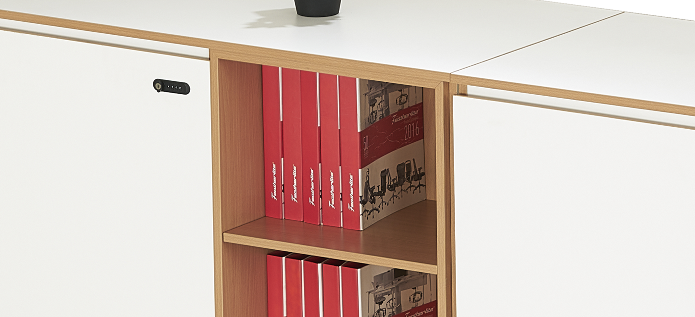 The integrated side cabinet offers practical organization with well-designed compartments and concealed drawers. It keeps essentials within reach while maintaining a clutter-free, streamlined workspace that enhances focus and functionality.