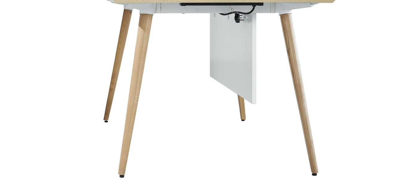 Tapered wooden legs bring natural elegance and stability to the workspace. Their warm tone and sleek design create a grounded yet sophisticated aesthetic, perfectly suited for modern executive environments.