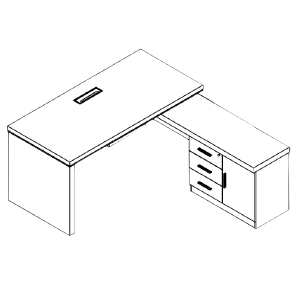 Built-in side storage integrates open shelves and shuttered compartments for a balance of accessibility and discretion. Adjustable shelving and secure locking options make it ideal for organizing essentials while maintaining a polished, clutter-free workspace.