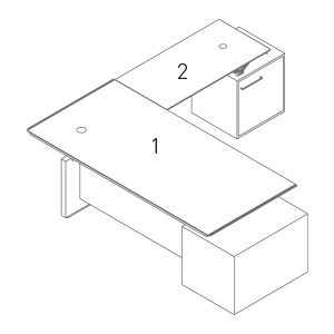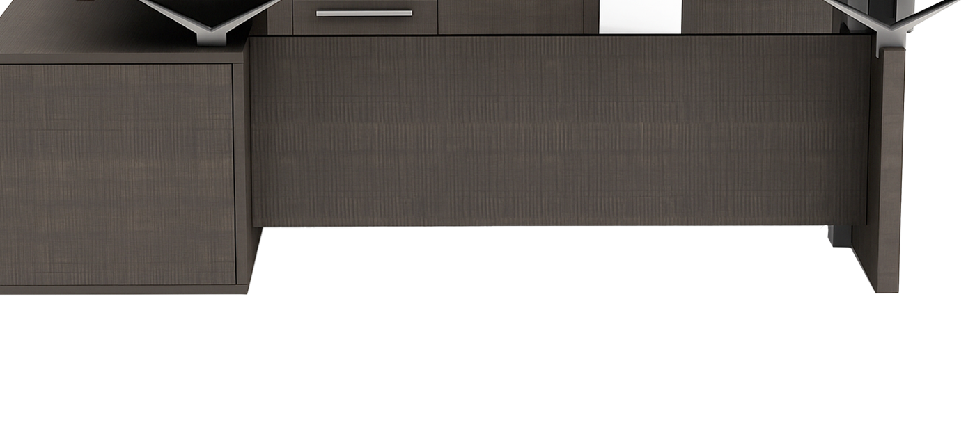 Integrated pedestal drawers and side storage units provide ample space for organization and security. Soft-closing mechanisms and elegant aluminum handles enhance both usability and design, ensuring that functionality never compromises aesthetics.