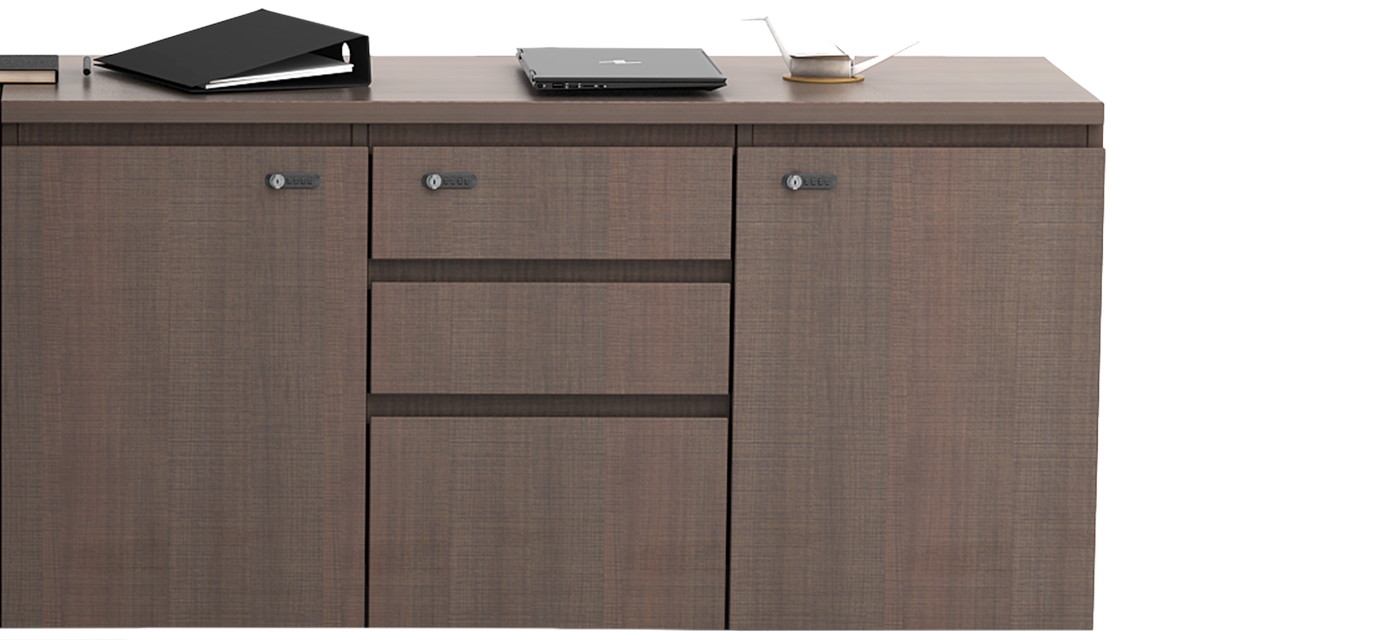 The storage unit provides ample space for files, devices, and office essentials. With drawers and cabinets built for accessibility and flow, it keeps the workspace organized while maintaining the table’s sleek form.
